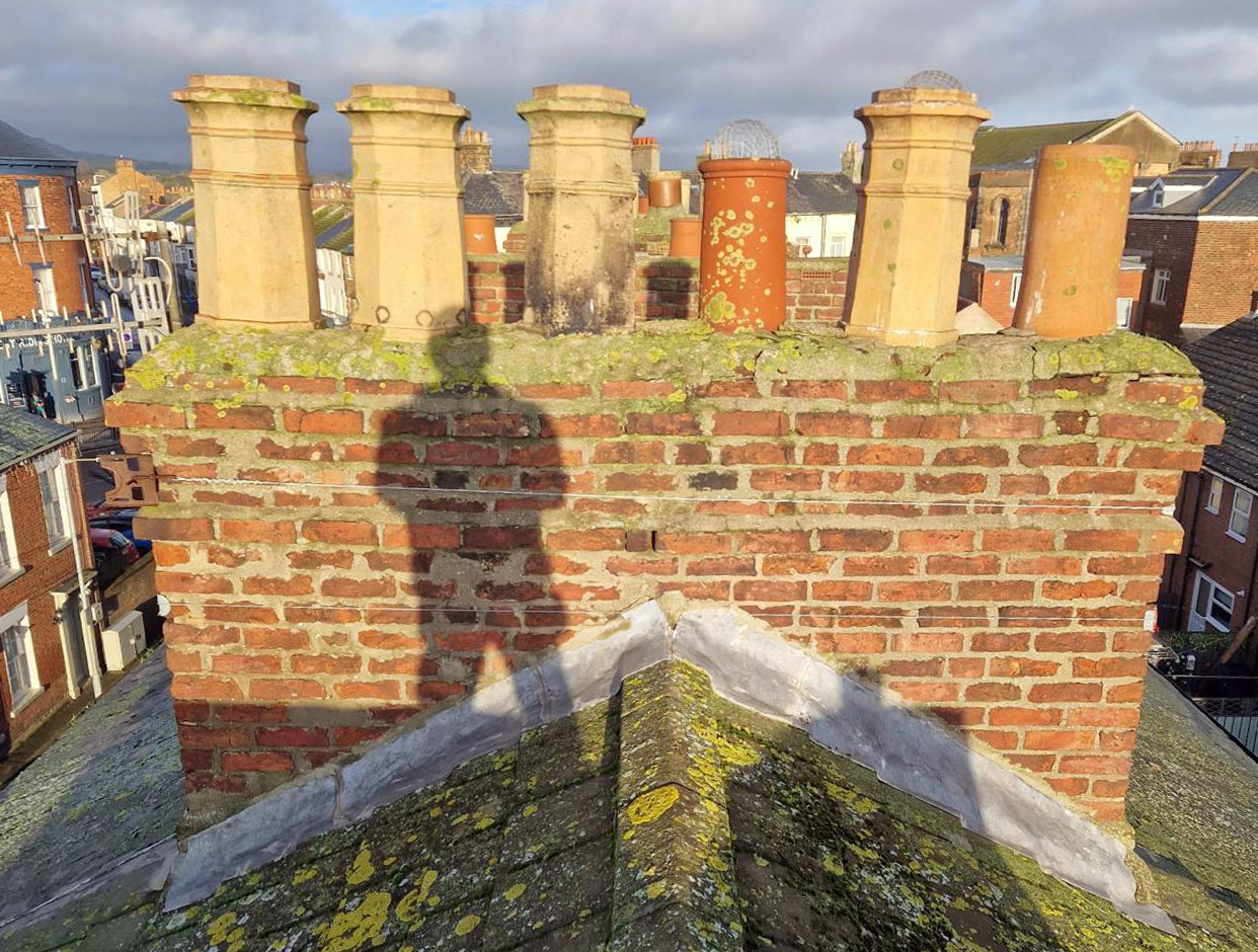 The chimney needed to be taken down because of structural problems, including perished mortar and crumbling bricks, leading to water ingress, which was making both properties damp and riddled with mould.